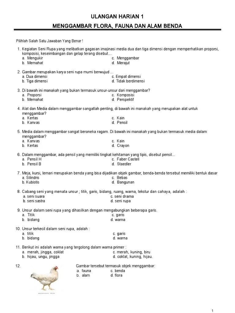 Ulangan seni budaya smp kelas 7. Unsur seni rupa adalah titik, garis, bidang, bentuk, ruang, warna, tekstur dan gelap terang✓. Play this game to review arts. Terima kasih sudah bertanya di roboguru. Jawaban atas pertanyaan tersebut adalah d. Gambar di atas merupakan unsur seni rupa yang berasal dari gabungan beberapa garis, biasanya disebut. Berikut yang bukan merupakan unsur seni rupa a. 1049 students attemted this question. Yang akan membangun karya seni + penjelasannya. Seni rupa itu seperti lukisan atau gambar nah kan gambar mempunya unsur unsur titik arah bangun dan gelap . Seni rupa memiliki beberapa unsur penting di dalamnya, seperti titik, garis, bentuk, ruang, bidang, tekstur, warna, dan gelap terang. Top 9 berikut ini yang bukan termasuk unsur seni rupa adalah dalam manakah yg rupa brainly co id toplist #tag:
